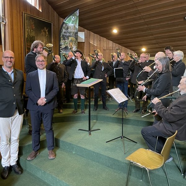 Am 9.11.2025 fand in der katholischen Kirche in Menzenschwand eine feierliche Messe zu Ehren unseres Schutzpatrons St. Hubertus statt. Begleitet von den Jagdhornbläsern St. Blasien unter der Leitung von Valentin Platten zelebrierte Pater Hubrig SJ vor einer großen Anzahl Jägerinnen und Jägern die Sonntagsmesse. In seiner Ansprache ging der Hegeringleiter Stephan Retz auf das Leben des Heiligen Hubertus ein und betonte, dass die Jagd ein Dienst an der Natur mit weitreichender Verantwortung ist. Wie seinerzeit der Hl. Hubertus die Ethik des Jagens nach der überlieferten Begegnung mit einem Hirsch, der zwischen den Geweihstangen ein weißes Kreuz trug, in den Mittelpunkt seines jagdlichen Verhaltens stellte, so ist es für uns als Jäger auch heutzutage eine Pflicht, die Wahrung der Schöpfung und die Pflege des uns anvertrauten Wildes stets zu achten.