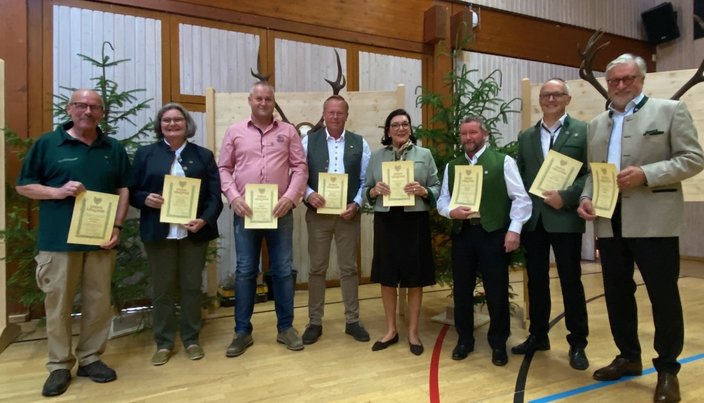 Nach der Totenehrung und der Ehrung verdienter Mitglieder für die langjährige Treue zum Verein aber auch für besondere langjährige Verdienste würdigten die Ehrengäste in ihren Grußworten die Arbeit der Jäger, ihre Bedeutung für die Gesellschaft und ihr Engagement für den Naturschutz. Die Jäger spielen bei der Wahrung der Tradition und der kulturellen Werte trotz der immer geringer werdenden Wertschätzung eine große Rolle. Besonders gewürdigt wurde die hervorragende Zusammenarbeit der Jäger mit den Behörden vor allem bei den Herausforderungen der ASP, der Wolfsproblematik und den Forderungen für den Waldumbau.Nur eine konstruktive Zusammenarbeit kann Erfolg haben.