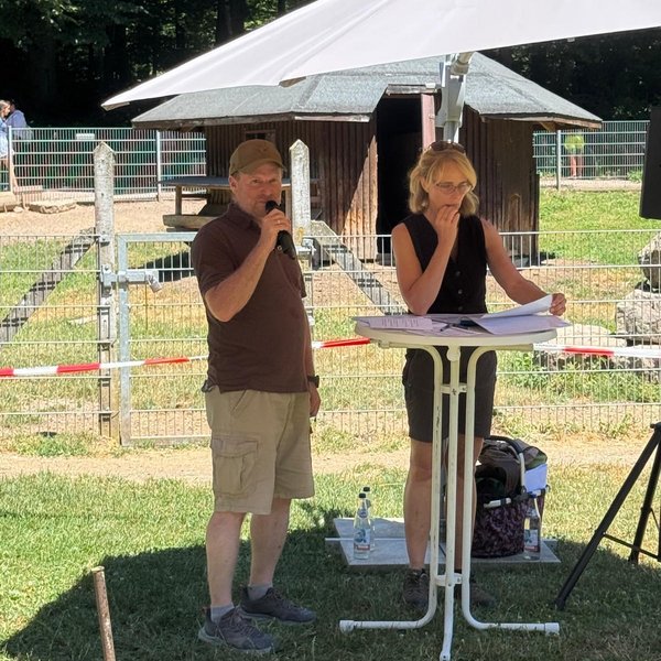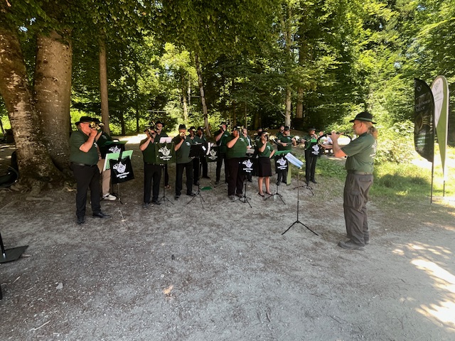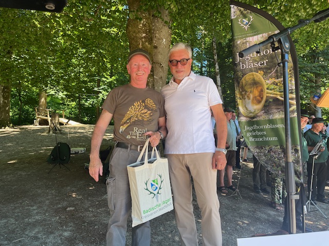 Der TAG DER JAGD im Wildgehege in Waldshut am Sonntag, dem 29.06.2025 war ein voller Erfolg. Trotz der enormen Hitze strömten viele Besucher in das idyllisch gelegene Wildgehege oberhalb Waldshuts, um mit den Jägerinnen und Jägern der Badischen Jäger Kreisverein Waldshut e.V. anläßlich ihres 60jährigen Bestehens zu feiern. Das Organisationsteam hatte sehr gut gearbeitet und bot umfangreiche Aktionen der LernortNatur-Mannschaft, der Jagdschule Hochrhein, der Drohnenpiloten und der Hundegruppe mit der Präsentation der Jagdhunderassen an. Die Hegeringe Tiengen und Ühlingen sorgten für gut gekühlte Getränke, der Hegering Waldshut bot sehr leckere Wildburger nach Kreisjägermeisterart mit Birne und Blaukäse und sehr feine Wildbratwürste an. Die Jägerinnen hatten in der Wildgehegehütte allein 40 tolle Kuchen und Torten im Angebot. Viele interessierte Gäste auch aus Nichtjägerkreisen nahmen das vielfältige Angebot gerne an und verbrachten einen wunderschönen Tag.