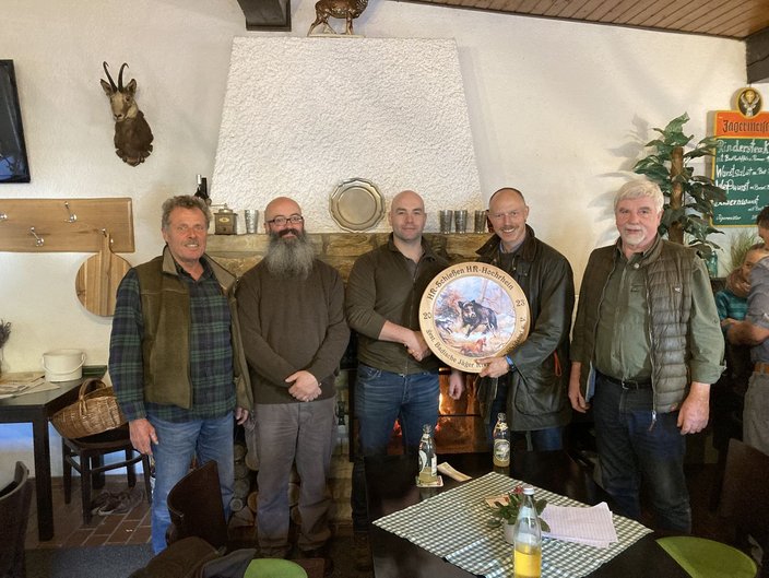 Wir gratulieren, mit Übergabe der Schützenscheibe, dem Gewinner des „Hegeringschießens Hochrhein 2023“ Adrian Wetzstein. Er stellte, wie im Vorjahr, sein Können in den Disziplinen „Kipphase“, „laufender Keiler“ und „stehend angestrichen auf 100 m“ unter Beweis.