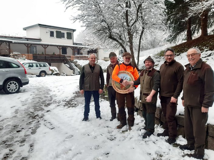 Am 10.12.2022 fand auf dem Schießstand in Wehr das Hegeringschießen der Hotzenwälder Jäger statt. HR Leiter Martin Stehle überreichte die vom KV gestiftete Ehrenscheibe an Edwin Thome.
