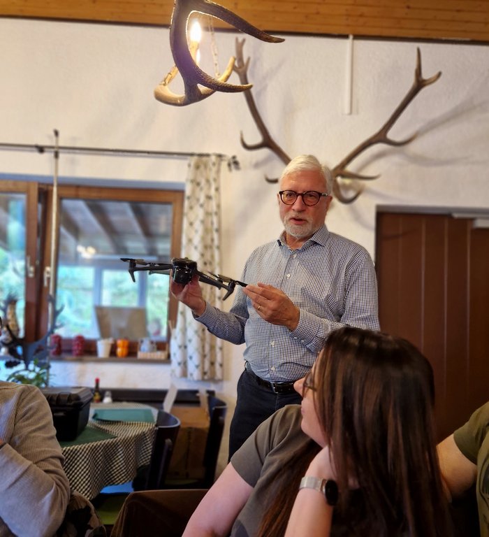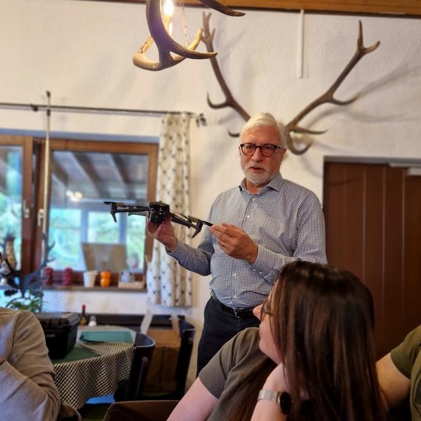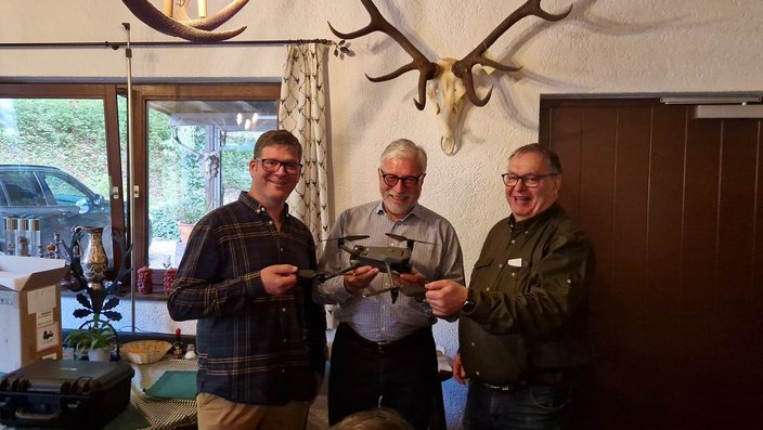Im Rahmen des HR Schießens auf dem Schießstand in Wehr konnte KJM Dr. Bernhard Kallup dem Hegeringleiter Thomas Bendel und seinem Stellvertreter Daniel Jehle die vom KV angeschaffte Drohne zur Kitzrettung übergeben. Damit stehen im Kreisverein nun sieben Drohnen zur Verfügung.