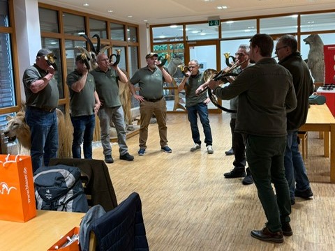 Die mitgereisten Jagdhornbläser spielten noch einige Stücke zum Aser.