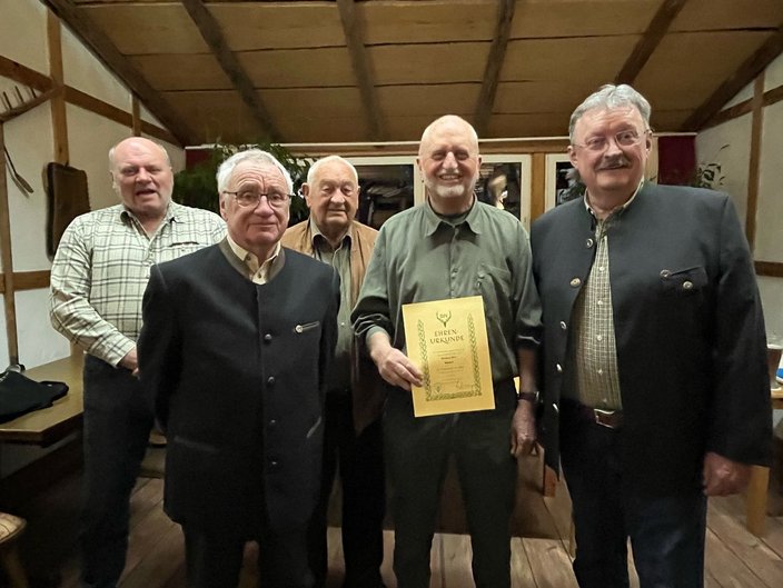 Für ihre Zugehörigkeit zum Kreisverein erhielten Wolfgang Berl die Treuenadel in Silber für 25Jahre Mitgliedschaft, Heinz Schaub und Josef Hässler (20Jahre Hegeringleiter des alten Hegerines Grießen) die Treuenadel in Gold für 50Jahre Mitgliedschaft. Erwin Franke wurde mit der Verdienstnadel in Bronze für seinen unermüdlichen Einsatz als Schießobmann in den vergangenen 40 Jahren geehrt.