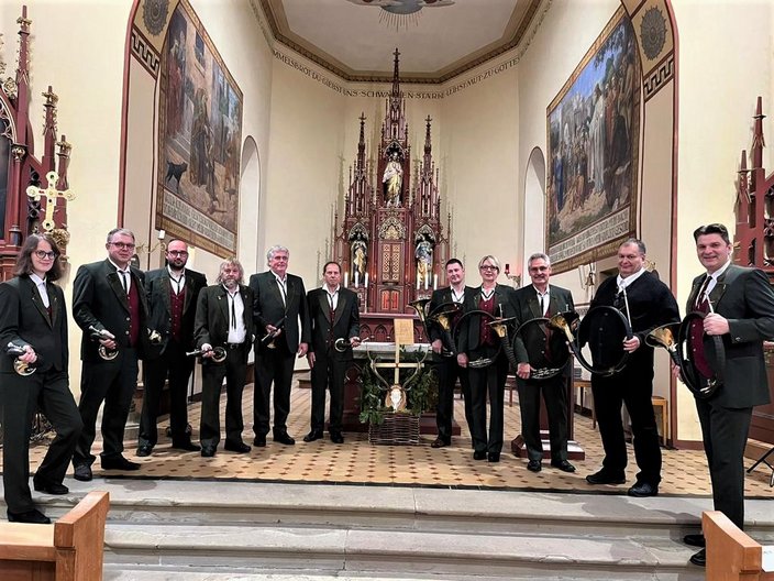 Musikalisch gediegen und gekonnt umrahmten die JHB Klettgau unter der Leitung ihres Dirigenten Georg Daudey die Abendmesse in der katholischen St. Maria Kirche in Lienheim, die ganz im Zeichen des Schutzpatrons der Jäger stand. Lang anhaltender Applaus war der Dank der Kirchenbesucher.