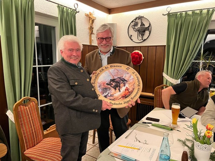 Hegeringleiter Bruno Kaiser hatte gerufen und viele Hegeringmitglieder waren seinem Ruf gefolgt. Er konnte 52 Mitglieder und als Gäste BM Thomas Kaiser (Häusern), Kreisjägermeister Dr. Bernhard Kallup, Thomas Emmerich vom Forstbezirk 19 Schwarzwald Süd und die Schriftführerin Margret Kallup begrüßen. Nach der Totenehrung, dem Bericht des Hegeringleiters und dem Kurzbericht des Bläserpräsidenten Alfred Thoma berichtete der KJM über aktuelle Themen im Kreisverein und lud die anwesenden Jägerinnen und Jäger zu der Jahreshauptversammlung am 28.04.2023 nach Dogern ein. Neben der Wahl des Kreisjägermeisters und seiner Stellvertreter wird Dr. Micha Herdtfelder von der FVA Freiburg einen Vortrag halten über die neuesten Erkenntnisse zu Wolf, Luchs und Goldschakal. Beim Rückblick auf das abgelaufene Jagdjahr wurde sowohl von Bruno Kaiser als auch Thomas Emmerich die problematische Jagd auf das Rotwild themastisiert. In allen Rotwildrevieren ist die Sichtung und der Abschuß von Rotwild extrem rückläufig. Es gibt zahlreiche Überlegungen und Ansätze für diese Entwicklung, aber eine stichhaltige Begründung können weder die Jagdpächter noch der Forst geben. Für eine Abschußplanvorbesprechung für Rot- und Gamswild wird Frau Katrin Münch von der Unteren Jagdbehörde Einladungen an die entsprechenden Jagdpächter versenden. Neuste Zahlen zur Entwicklung des Gamswilds durch den Gamsobmann Uwe Maier ist derzeit noch nicht möglich. Auerhahnobmann Johannes Stowasser bemängelte die Bereitschaft der Revierpächter, Auerwildvorkommen und - beobachtungen an ihn zu übermitteln. In diesem Jagdjahr soll wieder ein Hegeringschießen und eine Fuchswoche stattfinden. Der KJM überreichte für das Hegeringschießen eine Ehrenscheibe.Termine hierzu werden noch veröffentlicht. Eine Hubertusmesse wird am Sonntag, dem 05.11.2023 um 9:00Uhr in der katholischen Kirche in Häusern unter Mitwirkung der JHB St. Blasien stattfinden.