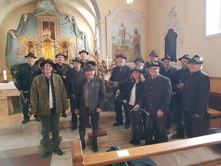 Die JHB St. Blasien untermalten die Sonntagsmesse am 06.11.2022 mit jagdlicher Musik im Gedenken an den Hl. Hubertus, den Schutzpatron der Jäger.
