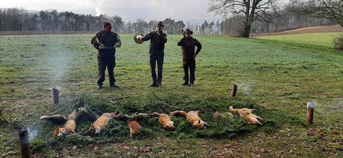 Das warme Wetter im Januar hatte auch auswirkungen auf die diesjährige Fuchswoche des HR Tiengen. Es konnten lediglich 7 Füchse erlegt werden. Trozdem kamen am Samstag, dem 07.Januar 14 Jäger zum Strecke legen zusammen.
