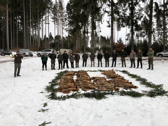 Vom 15.01. bis 22.01.2022 fand im HR Ühlingen eine Fuchswoche statt. Es konnten 61 Füchse erlegt werden. Unser Bläserobmann Holger Knörzer hat nach alter Tradition die Strecke verblasen. Ein Waidmannsheil den erfolgreichen Schützen.
