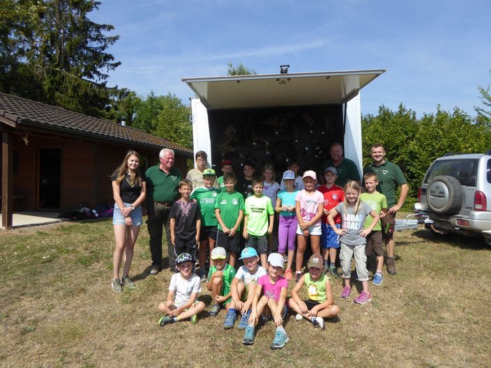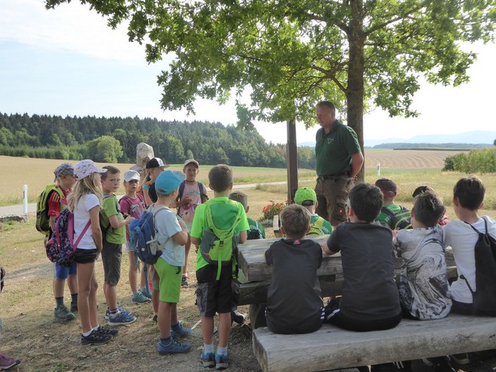 Hegeringleiter Günter Lüber, Paul Brogle und Christian Fischer bereicherten mit dem Lernort Natur Wagen das Ferienprogramm der Gemeinde Ühlingen-Birkendorf. Zu Beginn stand die große Frage: "Was macht ein Jäger?" Da war das Erstauen groß, als Günter Lüber den Kindern erzählte, dass der Jäger nicht nur in den Wald geht, um Wildtiere zu erlegen, sondern dass es ein großes Anliegen der Jäger ist, die Waldtiere zu hegen und zu pflegen. Nach einer kurzen Wanderung wurden Gehölze bestimmt und ein Dachsbau ausfindig gemacht. In der Zwischenzeit versteckten Paul Brogle und Christian Fischer zahlreiche Präparate aus dem Lernort Natur Wagen im Wald, die es dann zu suchen galt. Die Kinder waren mit Feuereifer dabei und waren sehr interessiert daran, über die Lebensweisen der einzelnen Gattungen zu hören. Kompetent beantworteten die Jäger die vielfältigen Fragen der naturinteressierten Kinder. Zum Abschluß des Tages wurde zur Freude der Kinder gegrillt und jedes erhielt zur Erinnerung an den schönen Tag einen von Paul Brogle geschnitzten Schlüsselanhänger.